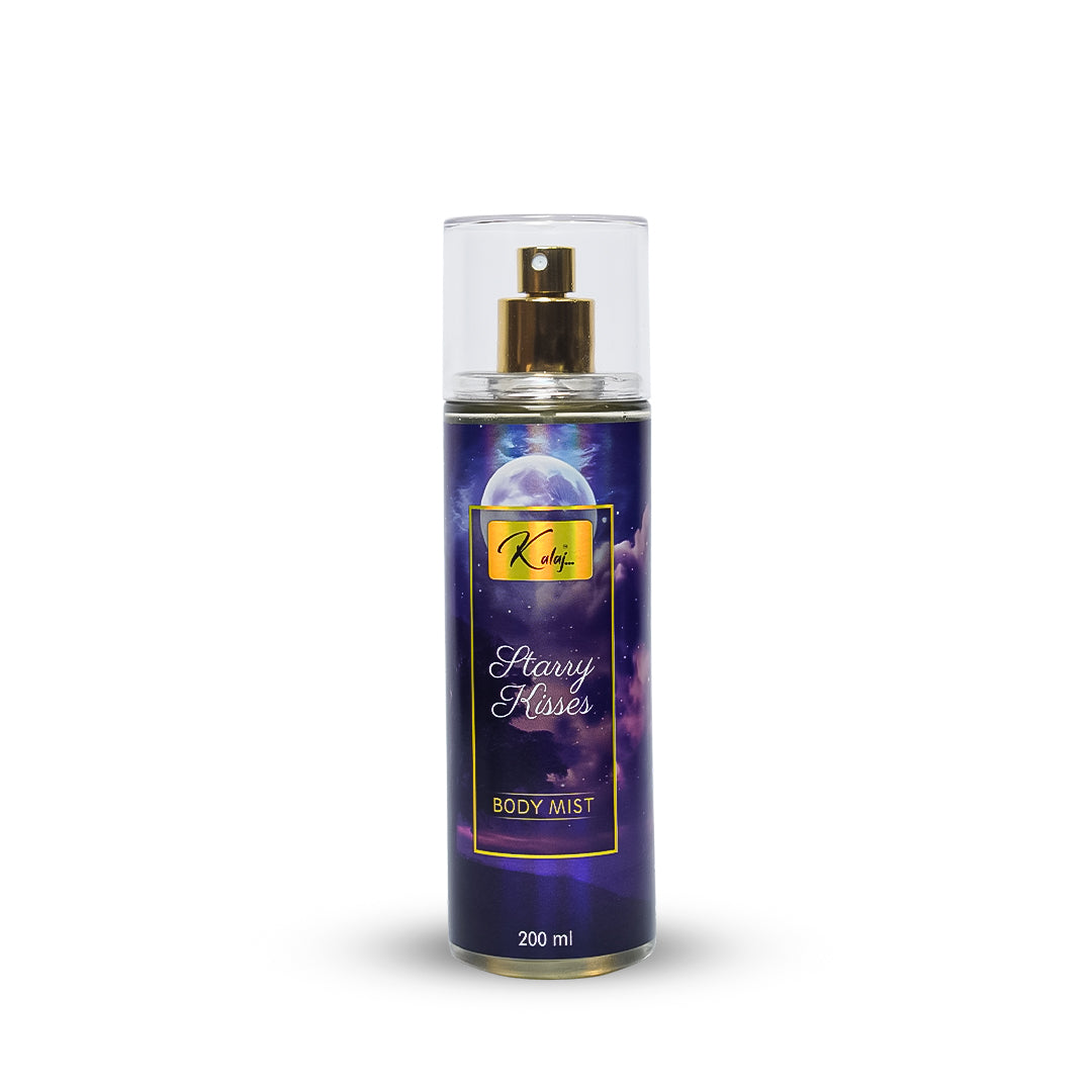 Wrap yourself in celestial magic. Starry Kisses shimmers with soft florals, creamy vanilla notes, and a trace of starlit sweetness. The fragrance leaves behind a trail as enchanting as moonlight, perfect for nights that feel infinite and moments that shine bright.